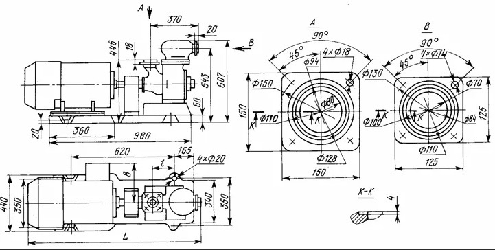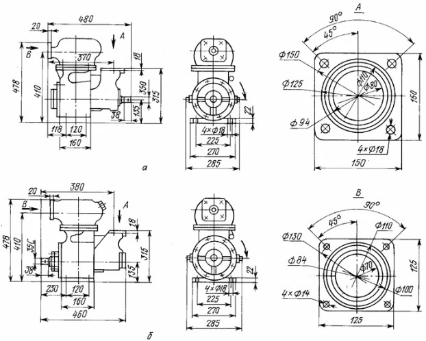 Входной фланец электроагрегата расположен в корпусе насоса. Нагнетательный – в колпаке. Колпак прикрепляется к корпусу насоса. Место для рабочего колеса по оси подводится к колесу. Отход от колеса предоставляют крышка корпуса насоса и крышка его промежутка. Они разделяют внутреннее пространство